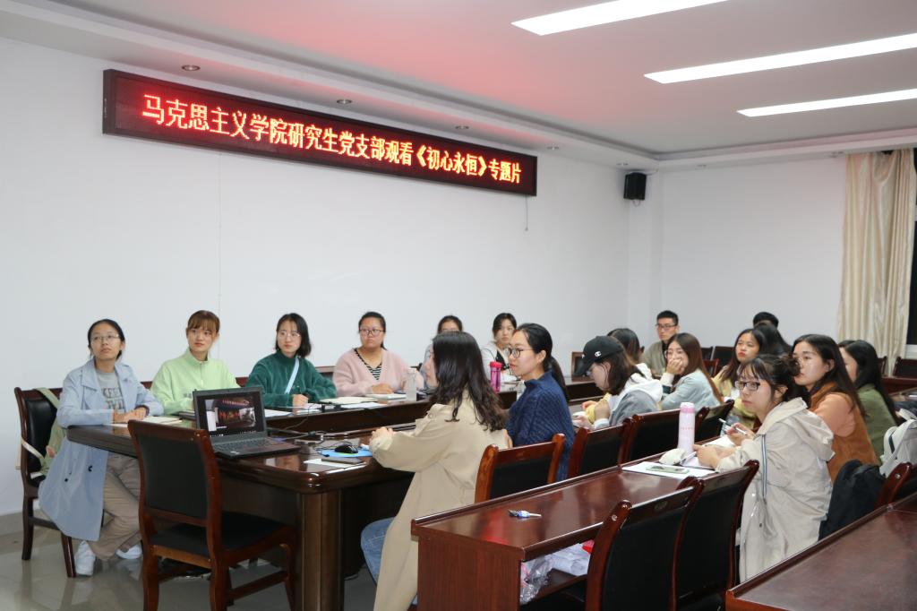 为深入贯彻“不忘初心、牢记使命”主题教育精神,引导广大党员自觉守初心、担使命,金年会官网研究生党支部于10月10日晚在社科楼323会议室组织观看了《初心永恒》记录片,全体支部党员、入党积极分子都踊跃到会,认真观看。