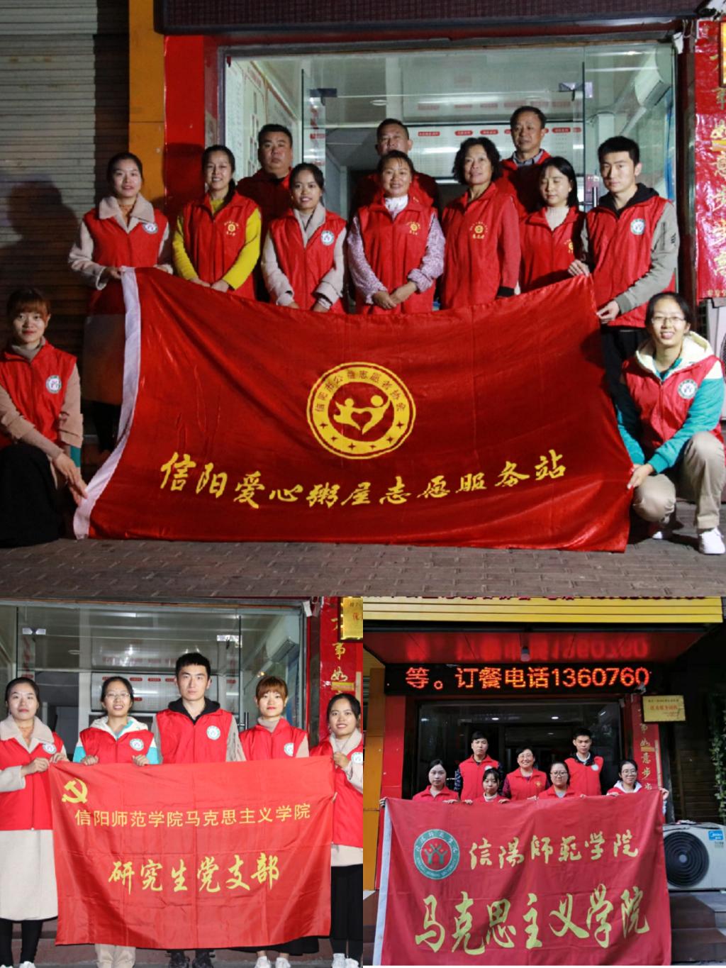 按照“不忘初心,牢记使命”主题教育精神要求,结合我支部的工作安排,本着大力弘扬“奉献、友爱、互助、进步”的志愿者服务精神,发挥党员同志的先锋模范作用,进一步密切党群关系,2019年10月31日金年会官网研究生党支部部分党员和入党积极分子组成志愿服务小队,来到信阳市申碑路浉河区“爱心粥屋”,为环卫工人备餐献爱心。