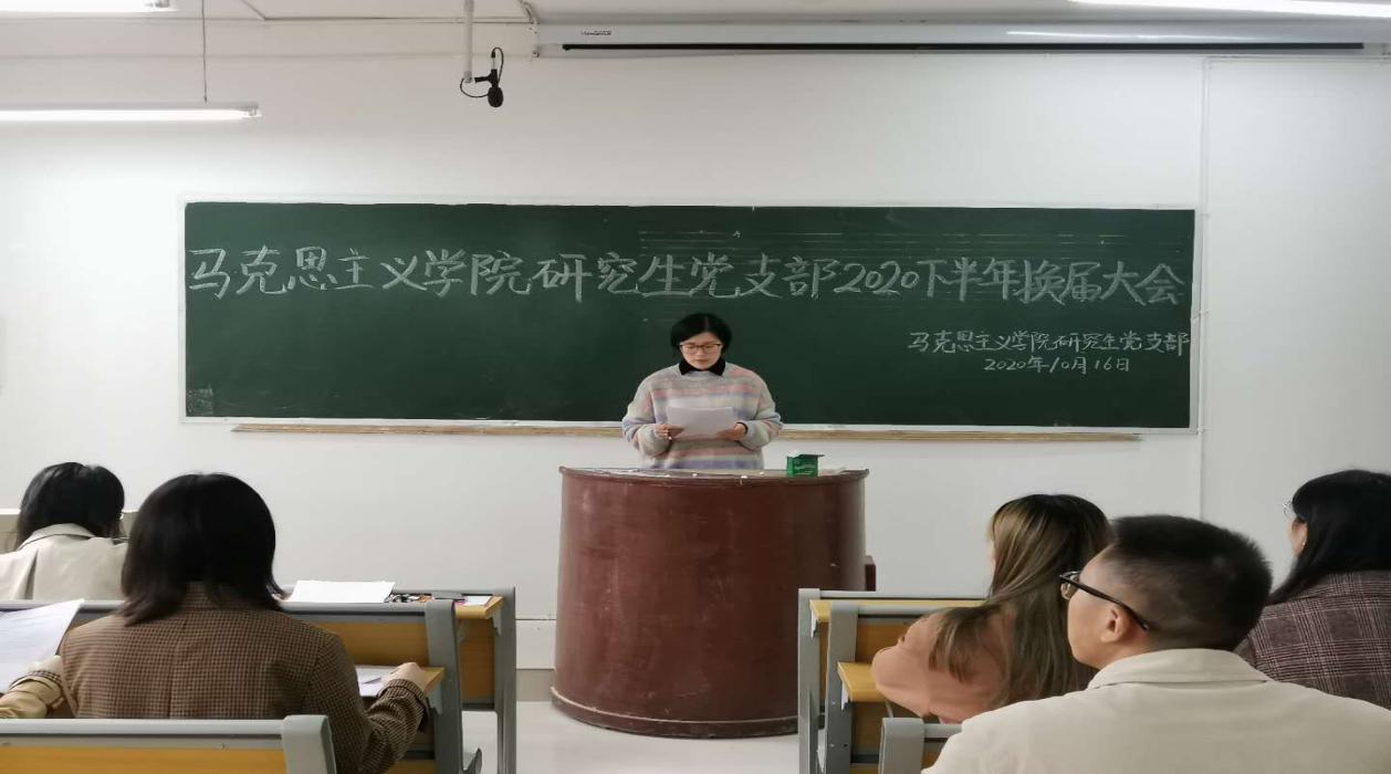 10月16日下午,金年会官网研究生党支部换届选举大会于教五楼201教室隆重召开,全体支部党员参加了本次大会。大会由研究生党支部书记郑晨霞主持。