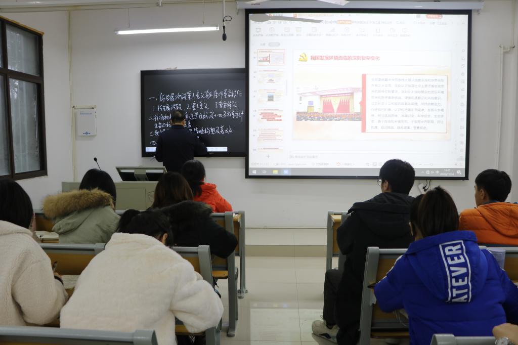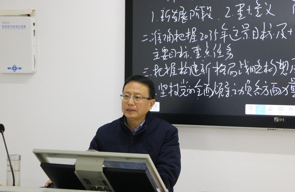11月24日下午四点,为使研究生深刻领会十九届五中全会精神,把握好新发展阶段的时代要求,学院特邀请金年会官网党委书记唐国战教授为研究生做专题辅导,讲座在教五楼203教室进行。卢云晓主持,全体研究生聆听了报告。
