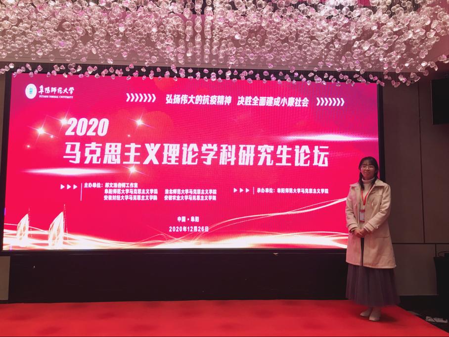 12月26日,“弘扬伟大的抗疫精神 决胜全面建成小康社会”马克思主义理论学科研究生论坛(2020)在阜阳师范大学隆重召开。金年会官网2019级马克思主义发展史专业研究生刘润博,作为唯一学院类的高校研究生代表应邀参会,其提交《习近平“以人民为中心”思想话语创新的特点分析》论文荣获三等奖。