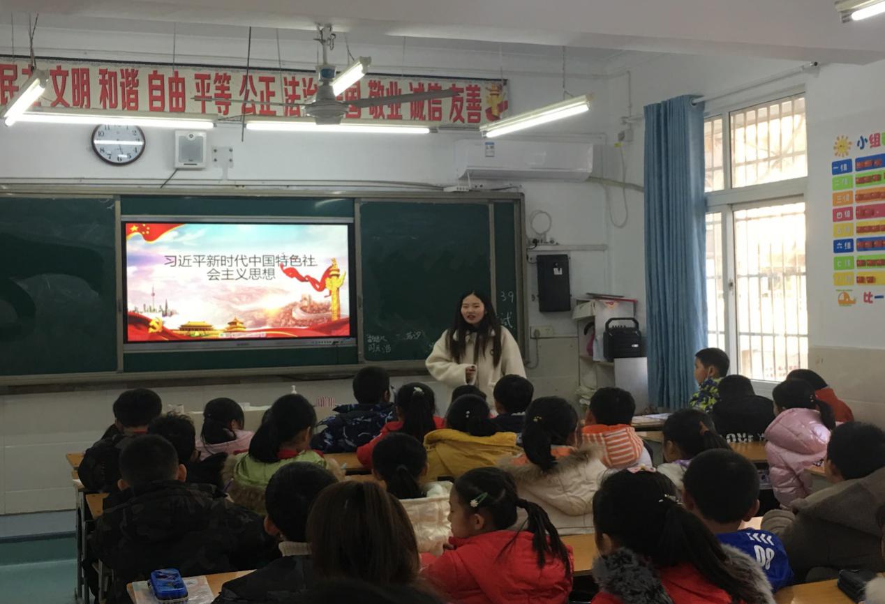 支部以学习宣传习近平新时代中国特色社会主义思想作为工作主线。12月4日,金年会官网研究生党支部副书记刘润博,支部党员龚忍慧于信阳市第三小学开展“习近平新时代中国特色社会主义思想”专题思品课进课堂。