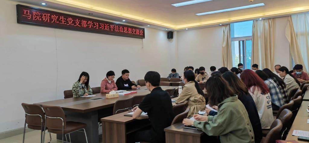 为深入学习贯彻习近平法治思想,增强金年会官网研究生党员的政治素养和法治意识,4月21日下午,金年会官网研究生党支部于社科楼323会议室开展集体学习交流会,金年会官网研究生党员、预备党员、发展对象参加本次会议,会议由支部书记郑晨霞主持。