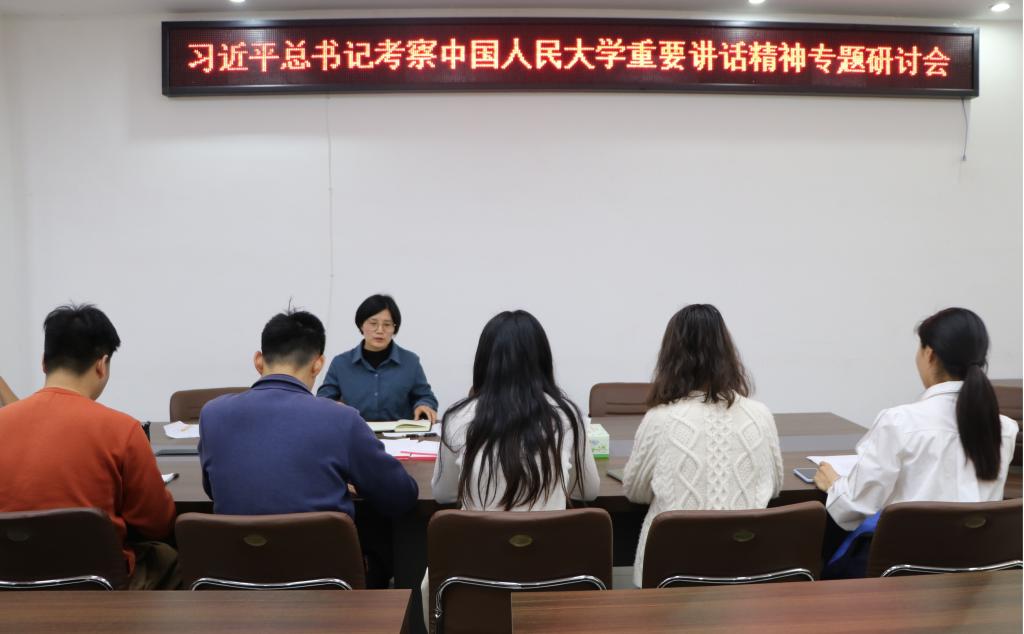 为深入学习贯彻习近平总书记考察中国人民大学重要讲话精神,近日,金年会官网研究生党支部于社科楼323会议室开展了集体学习研讨会,会议由支部书记郑晨霞同志主持。
