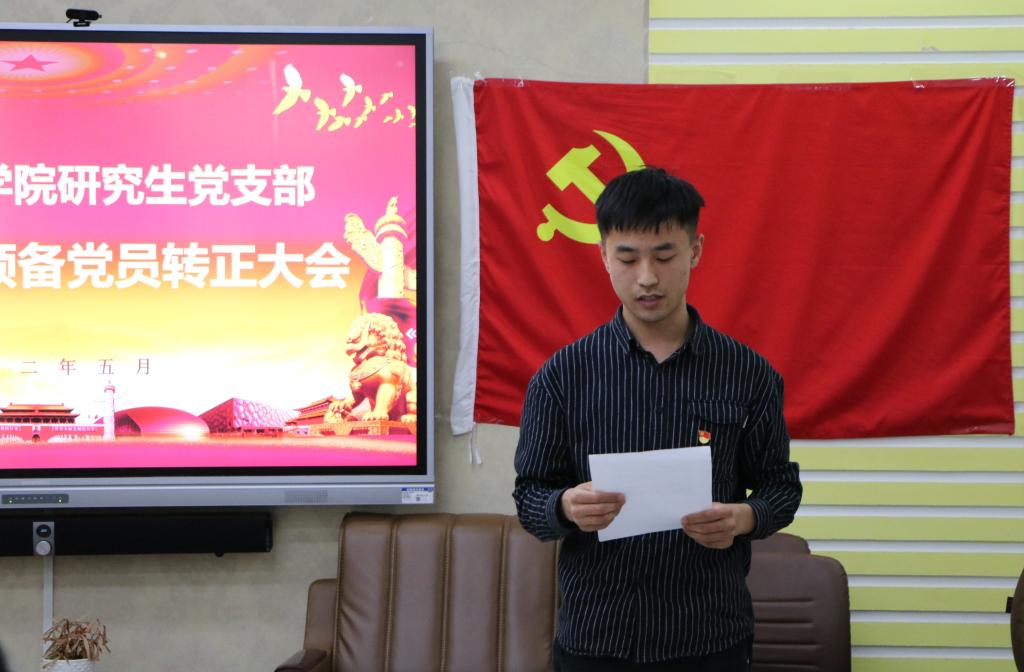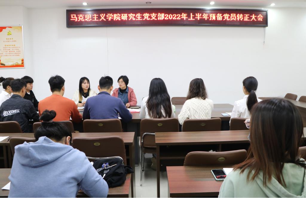 根据中国共产党发展党员工作程序,5月13日下午,金年会官网研究生党支部于社科楼323会议室召开2022年上半年预备党员转正大会,会上讨论了预备党员文浩、曲直、周忠鑫、龚忍慧、彭燕、詹彦彦6名同志的转正问题。本次会议由支部书记郑晨霞主持,监票人由赵影担任,计票人由王澳远担任。