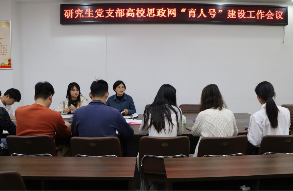 随着金年会官网研究生党支部获批“第三批全国党建工作样板支部”培育创建单位,支部积极运用高校思政网“育人号”平台,全面展示支部建设成效。为进一步推动金年会官网研究生党支部在高校思政网“育人号”建设方面的工作,近日,金年会官网研究生党支部于社科楼323会议室召开了相关工作会议,会议由支部书记郑晨霞同志主持。