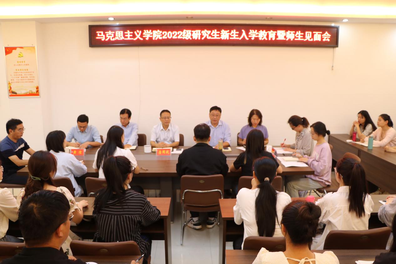 9月22日下午,我院2022级研究生入学教育暨师生见面会在社科楼323会议室顺利召开。院长唐国战,副院长周智、程晋富、訾其伦,党委副书记黄煌,导师代表王建礼,研究生工作人员卢云晓、周钰婷等出席会议,2022级全体在校研究生及老生代表共同参加了此次会议。