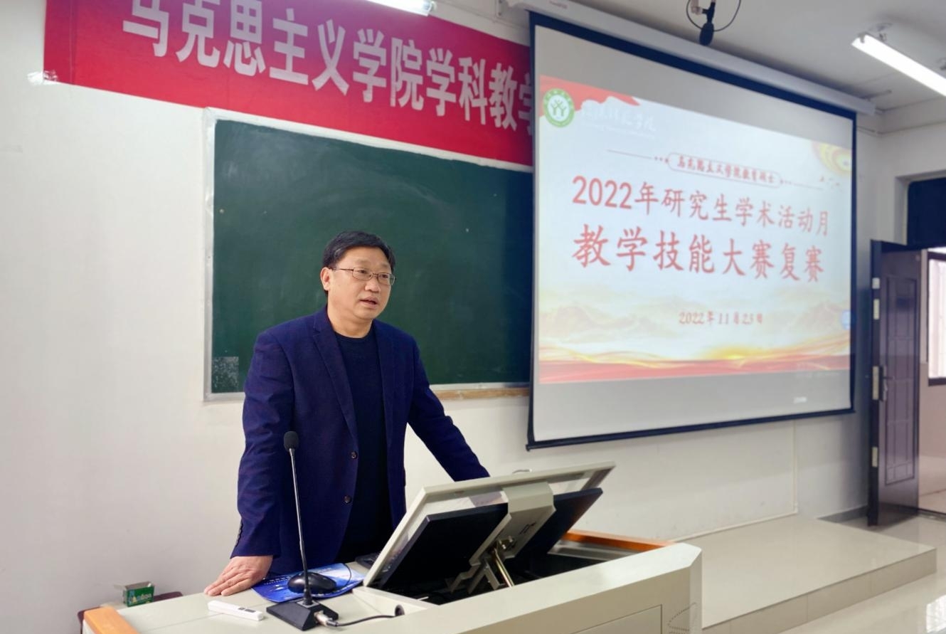研究生学术月期间,金年会官网成功举办教育硕士教学技能大赛。教育教学技能大赛是我校教育硕士培养方案的重要组成部分,旨在提升金年会官网学科教学(思政)专业研究生的说课讲课水平,夯实教育理论知识,锤炼教育教学实践能力。大赛初赛金年会官网40名教育硕士全员报名参加,15名选手入围复赛。复赛由金年会官网研究生班主任周钰婷主持,特别邀请副院长周智、副院长程晋富、思想政治教育系主任王建礼、经济学教研室主任殷凯、毛泽东思想和中国特色社会主义理论教研室主任胡春湘出席并担任评委,全体教育硕士研究生现场观摩学习了本次比赛。