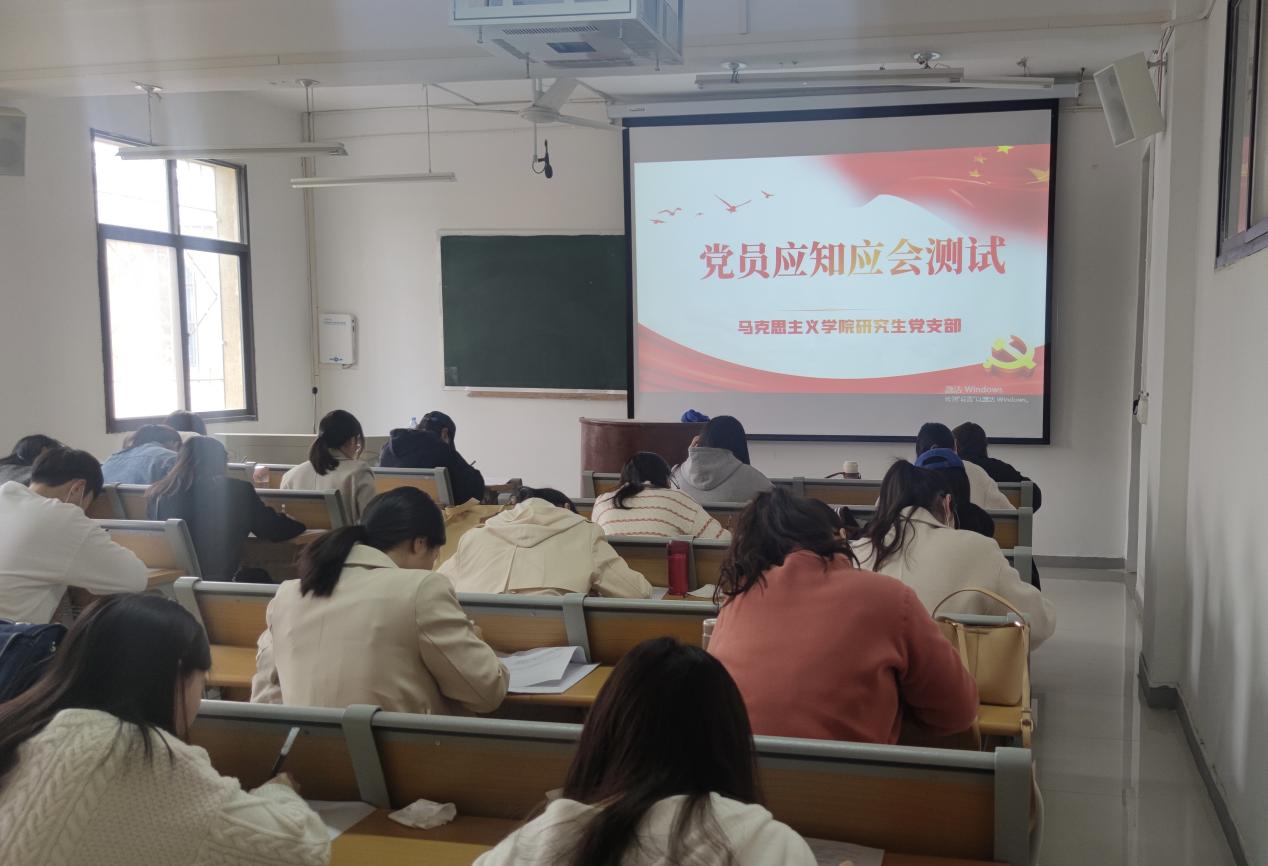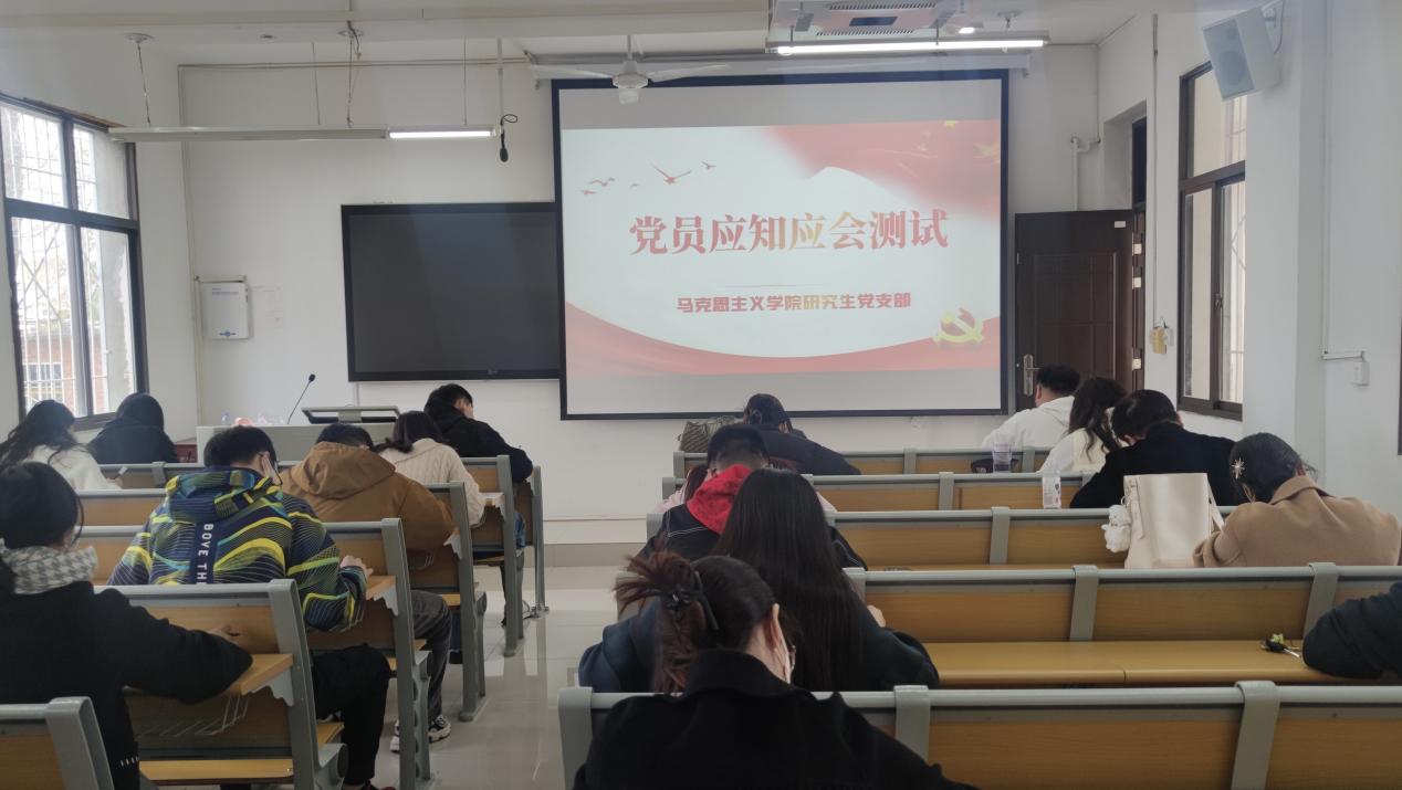 为全面学习贯彻党的二十大精神,切实做到入脑入心,引导基层党组织和广大学生党员、预备党员、入党积极分子进一步统一思想、凝聚共识、营造深入学习贯彻习近平新时代中国特色社会主义思想的浓厚氛围,3月28日下午,金年会官网研究生党支部组织支部党员、预备党员、入党积极分子于教学楼5楼201、203教室开展了党员应知应会知识竞赛党日活动。活动由支部副书记朱海军主持。