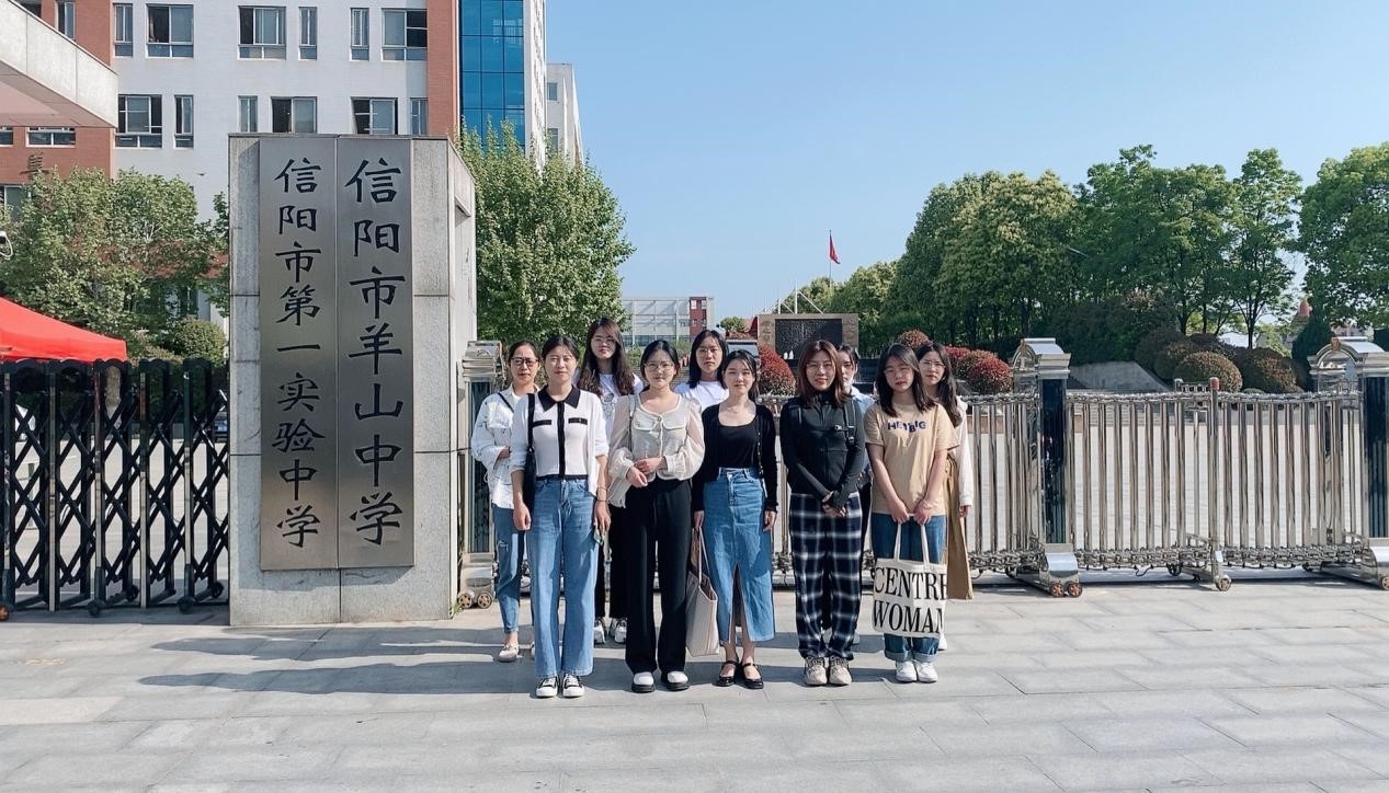 2022级教育硕士在信阳市羊山中学校门前合影留念