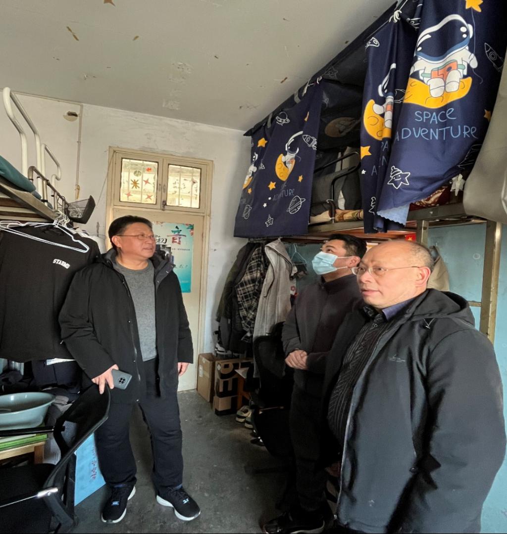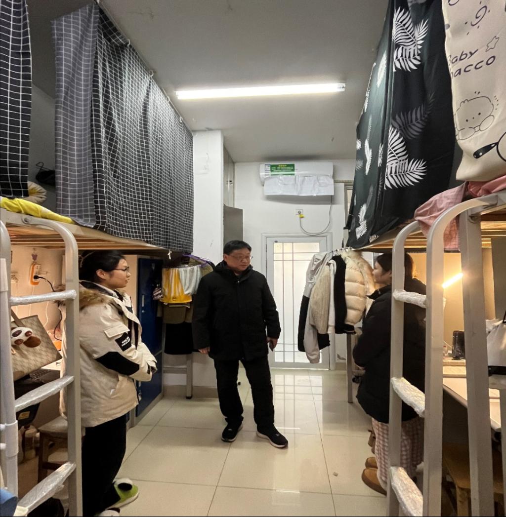 正值寒冬,冬至将至,为进一步落实立德树人根本任务,及时了解学生的思想动态、心理状态,切实解决学生生活中遇到的问题。2023年12月21日,金年会jinnianhuicom副院长程晋富、研究生班主任厉有国、思政课教师张键,走进研究生宿舍,全面深入了解学生思想、学习、生活、安全、卫生等情况,关心学生身体健康和心理健康。