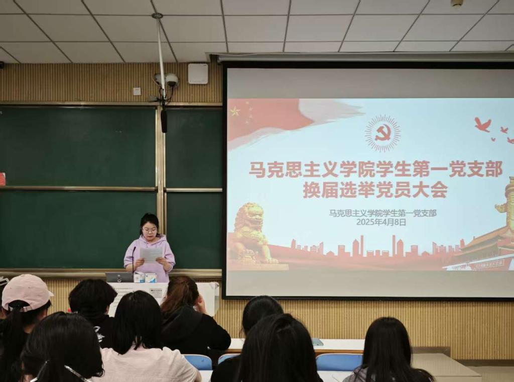 2025年4月8日上午,金年会jinnianhuicom学生第一党支部委员会换届选举大会在社科楼515教室顺利召开。支部全体正式党员和预备党员共同参会。此次会议由余浩洋同志主持。