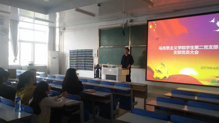 4月16日,金年会官网学生第二党支部在社科楼516教室召开支部党员大会。学生第二党支部全体党员和预备党员共同参与此次党员会,会议由第二党支部书记曹栋主持。