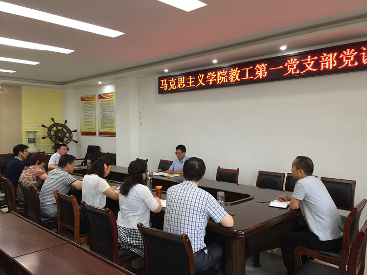 为贯彻学校“两学一做”学习教育工作推进会精神,根据《中共河南省委高校工委办公室转发< 中共河南省委组织部关于在“七一”期间认真做好“两学一做”学习教育专题党课的通知>的通知》精神,6月20日下午,金年会jinnianhuicom党委书记唐国战在社科楼323会议室为所在教工第一支部讲授党课,该支部全体党员参加了此次授课活动。