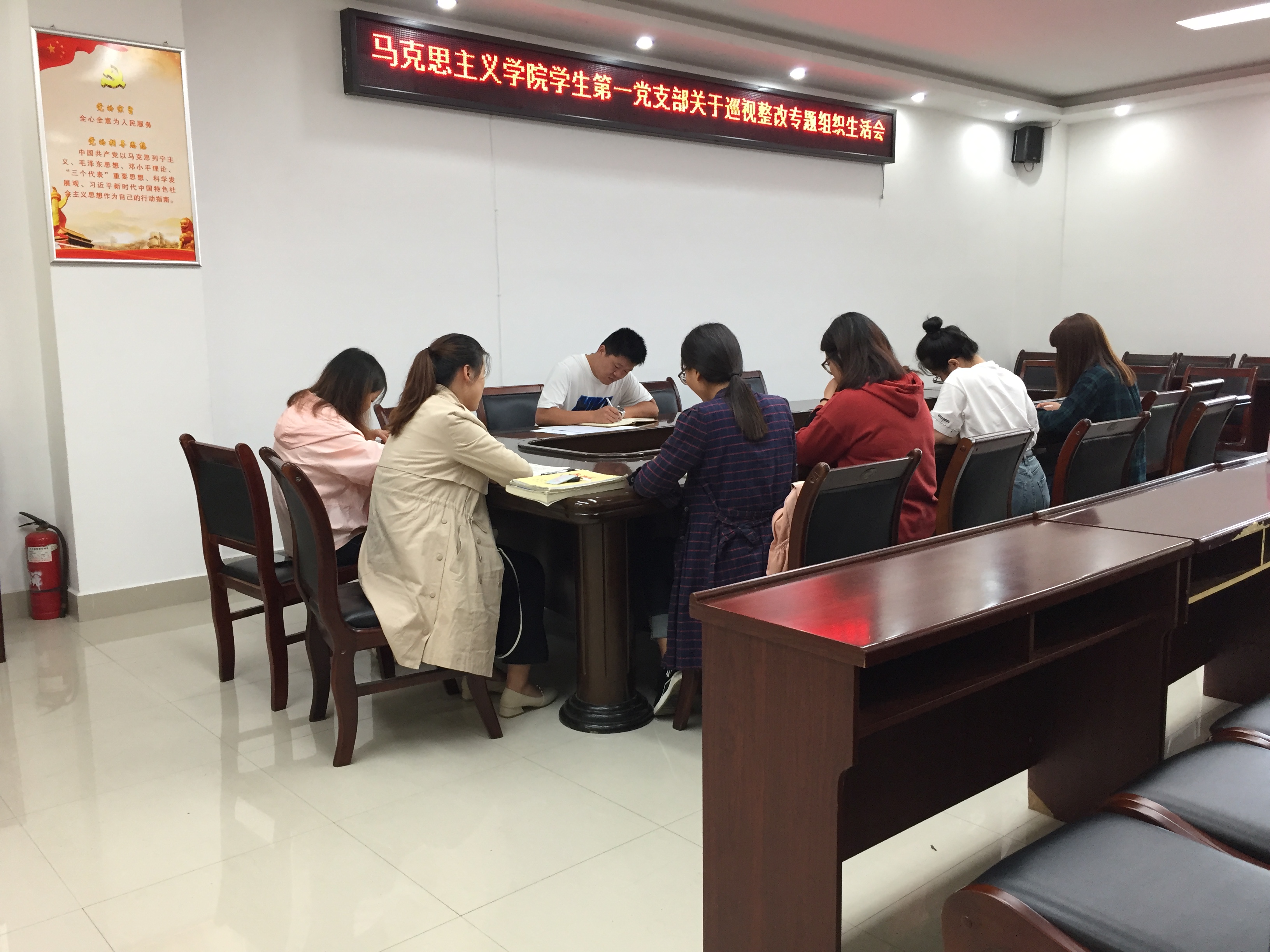 2018年9月21日下午,金年会官网学生第一党支部在社科楼323会议室召开巡视整改专题组织生活会,支部全体党员和预备党员参加会议。会议由学生第一党支部书记孙绪曙同志主持。