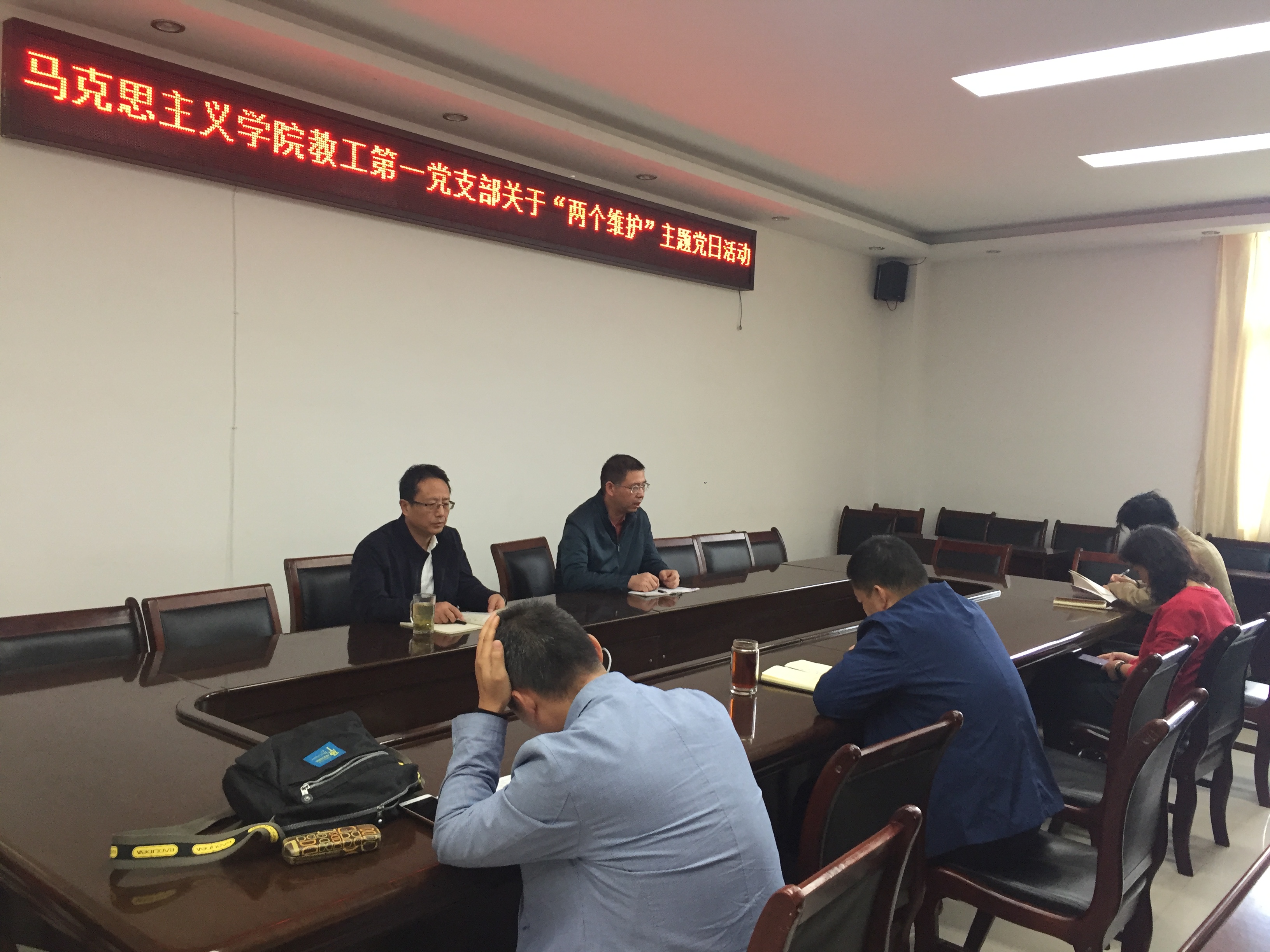 10月18日下午,金年会官网教工第一党支部在323会议室召开了“两个维护”主题党日会议。党支部书记王传富同志主持了会议,支部全体成员参加。