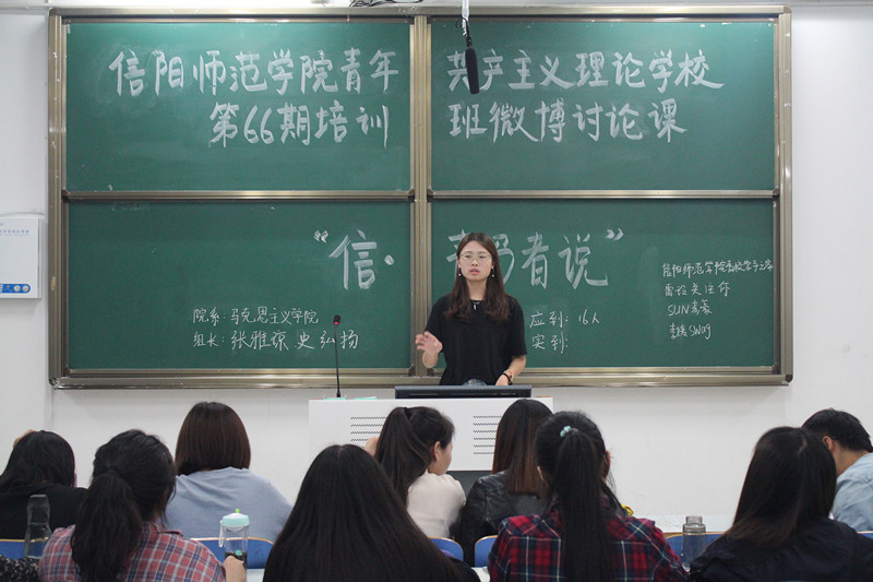为号召青校学员勇于肩负起时代赋予的重任,使其树立坚定的理想信念,5月24日晚,金年会jinnianhuicom第66期青校学员在社科楼516教室开展“信﹒青马者说”主题讨论活动。金年会官网第66期青校全体成员共同参加了本次活动。活动由本期青校组长张雅琼主持。