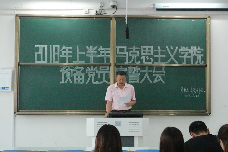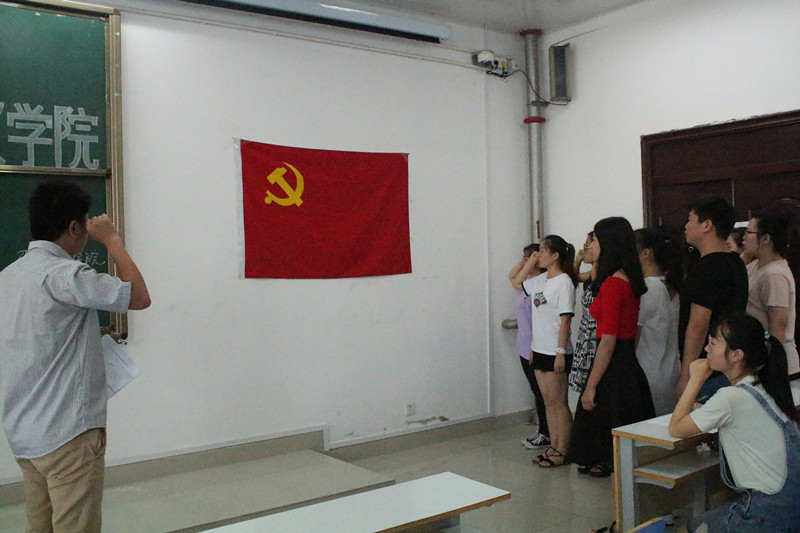 6月21日上午,金年会jinnianhuicom在社科楼516教室召开了2018年上半年预备党员宣誓大会,金年会官网党委副书记徐永新,学生第一党支部书记孙绪曙,第二党支部书记曹栋及正式党员、预备党员共同参加此次会议。宣誓大会由孙绪曙主持。