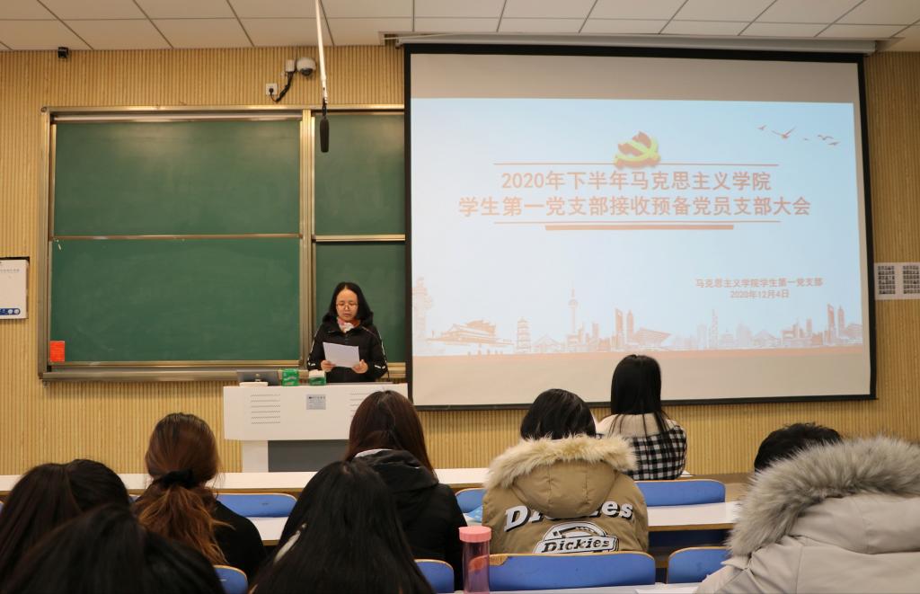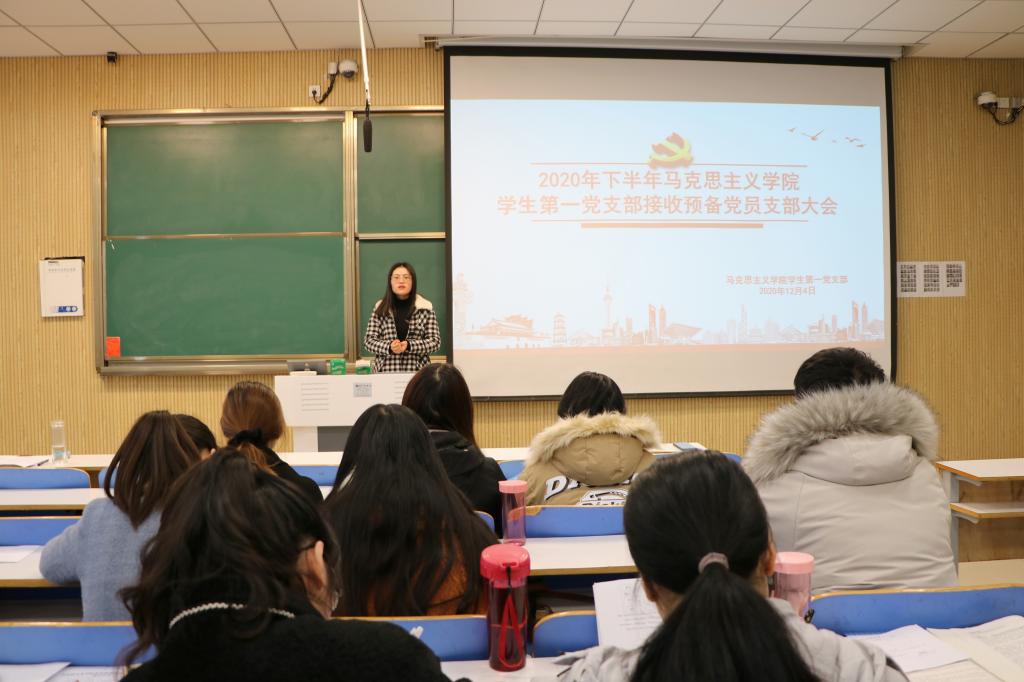 12月4日上午,金年会jinnianhuicom在社科楼515教室召开2020年下半年学生第一党支部接收预备党员支部大会。金年会官网学生第一党支部支部正式党员曹菁菁、杨青青,学生第一党支部预备党员和党员发展对象共同参加本次会议。会议由李一凡主持。