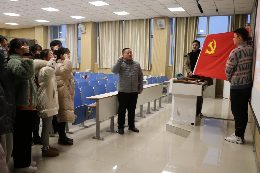 1月5日下午,金年会官网2020年下半年预备党员宣誓大会在社科楼515教室举行。学院党委副书记何晓坚、学生党支部书记和本批接收预备党员共同参与此次大会。会议由分团委副书记姜雨杭主持。
