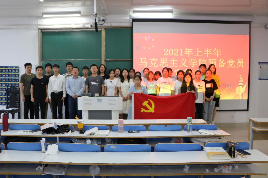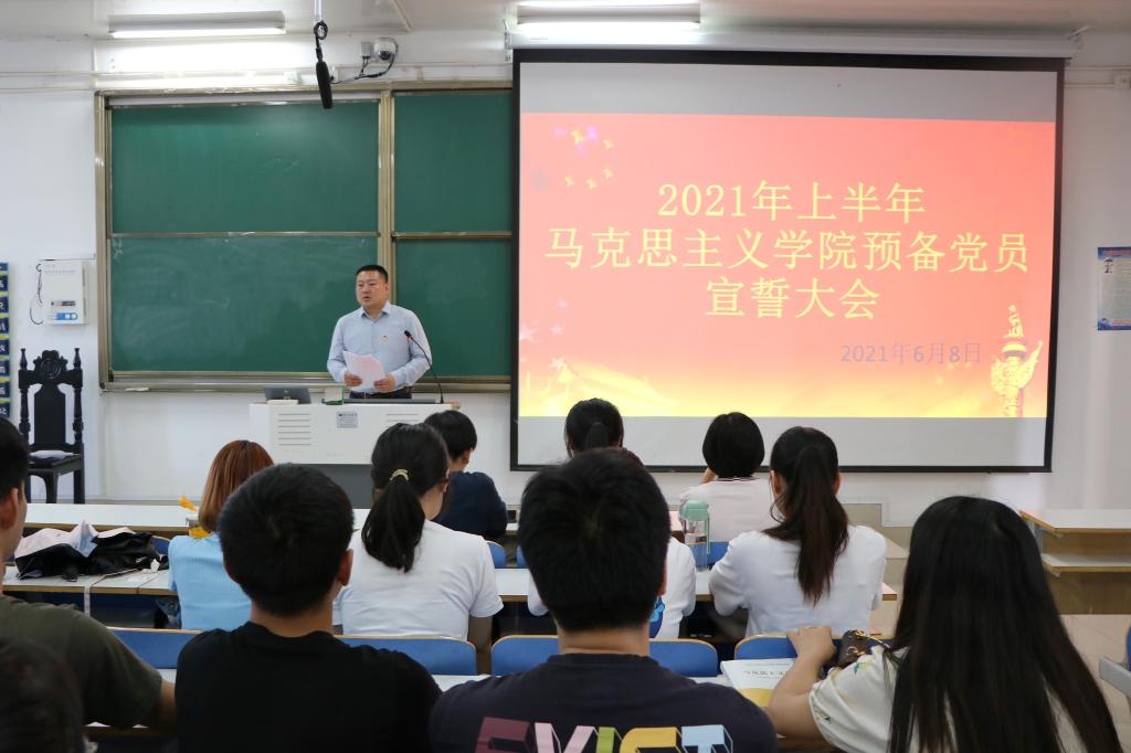 6月8日下午,金年会官网2021年上半年预备党员宣誓大会在社科楼514教室举行。学院党委副书记何晓坚、学生党支部书记、预备党员和部分入党积极分子共同参与此次大会。会议由预备党员王明亮主持。