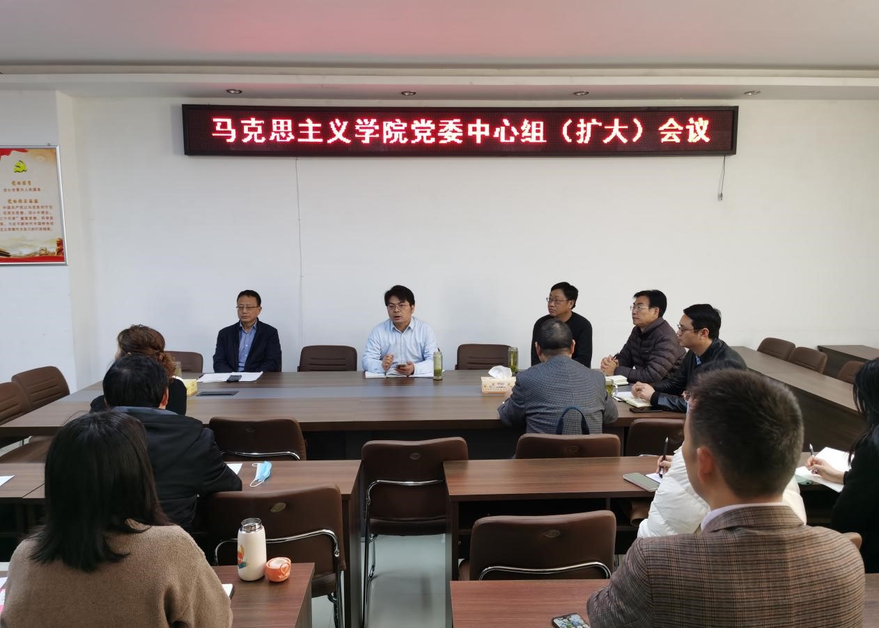 11月15日上午,金年会jinnianhuicom党委理论中心组在323会议室召开扩大会议,集中学习党的十九届六中全会精神。金年会jinnianhuicom领导班子成员、教研室主任、各党支部书记、辅导员和班主任参加学习会。会议由学院党委书记朱四倍主持。
