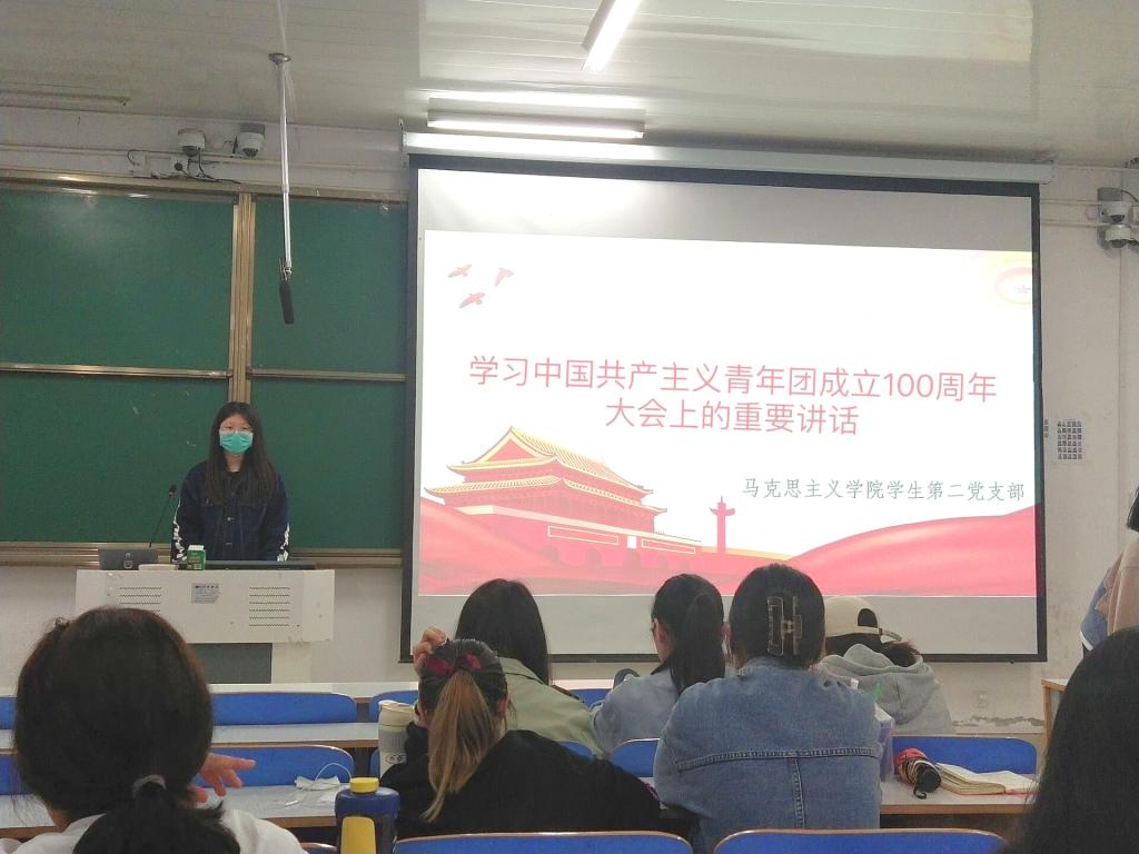 5月12日下午,金年会jinnianhuicom学生第二党支部在社科楼516教室开展以学习中国共产主义青年团成立100周年大会上的重要讲话为主题的党日活动。学生第二党支部党员参加此次活动。会议由张靖茹主持。