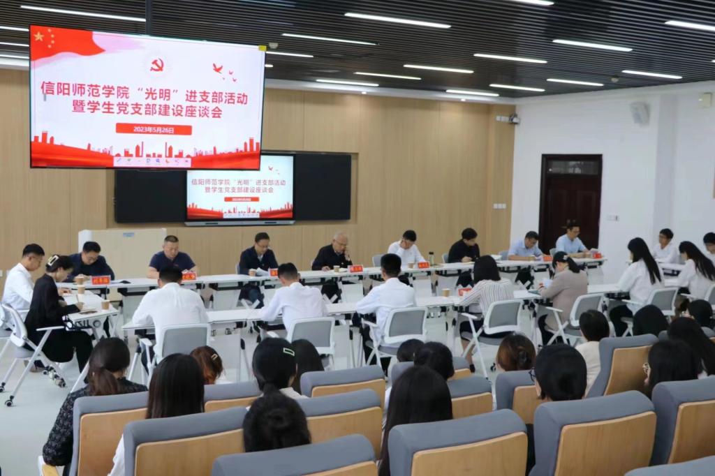 5月26日下午,校党委副书记龚立新带领党委组织部、党委办公室、数学与统计学院等部门负责同志莅临金年会jinnianhuicom指导开展“光明”进支部活动暨学生党支部建设座谈会。学院领导班子成员、相关学院党支部负责人、学生党员代表共同参与会议。会议由党委委员、组织部长林兴岚主持。
