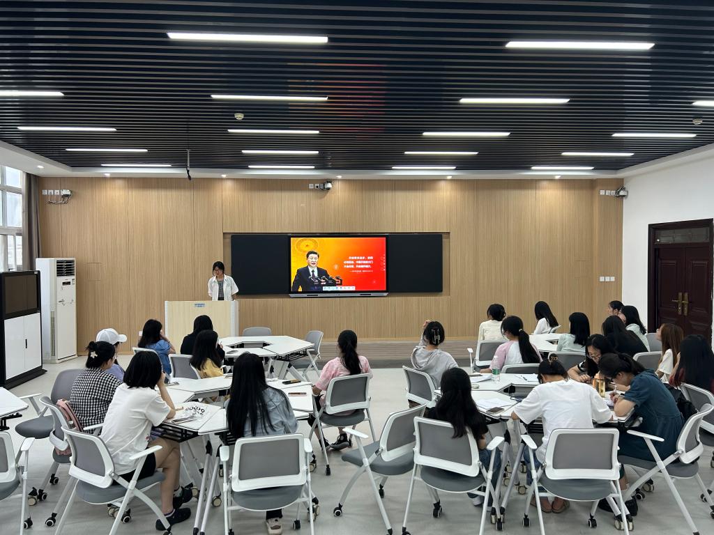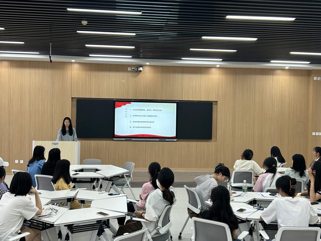 会议伊始,雷江涛分享了习近平新时代中国特色社会主义思想中的以人民为中心的相关知识。雷江涛表示,以人民为中心是习近平新时代中国特色社会主义思想的重要组成部分,我们应当深刻认识到以人民为中心的思想对我们党永葆先进性、纯洁性的重要作用。接着,卢茜雨分享了学习习近平总书记关于文化的重要论述的感悟。她谈到,文化自信对建设社会主义现代化强国有着十分重大的现实意义,有利于弘扬社会主义核心价值观以及推动构建中国特色哲学社会科学体系。随后,申畅畅、王紫怡依次分享了学习习近平新时代中国特色社会主义思想的体悟和心得,主题丰富、内容充实,有效激发了与会同志的深入思考和交流。会议最后,任婷同志作出总结。她指出,通过此次学习分享会,各位同志对习近平新时代中国特色社会主义思想有了更加全面的认识,她呼吁大家要真正做到学思想、强党性、重实践、建新功,为实现第二个百年目标而努力奋斗。