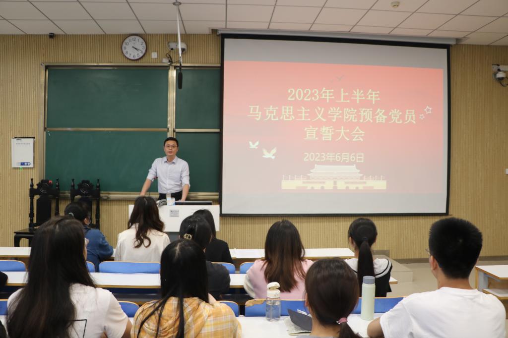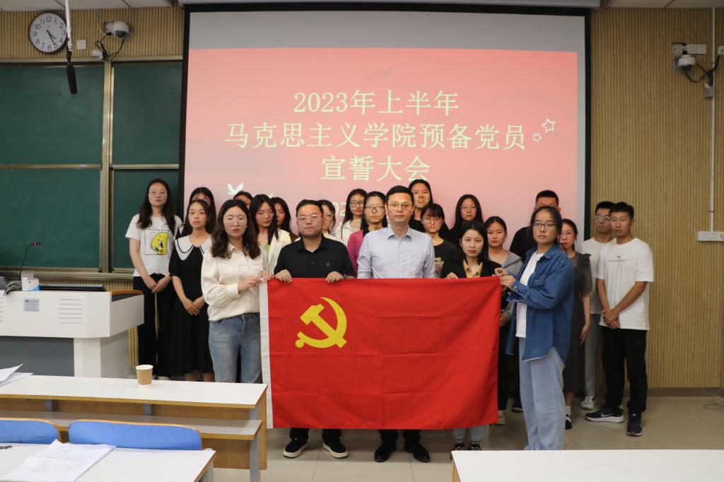 6月6日下午,金年会jinnianhuicom在社科楼515教室举行2023年上半年预备党员宣誓大会。金年会官网党委副书记黄煌、专职组织员任婷、部分党员和全体预备党员共同参加。会议由预备党员张素冰主持。