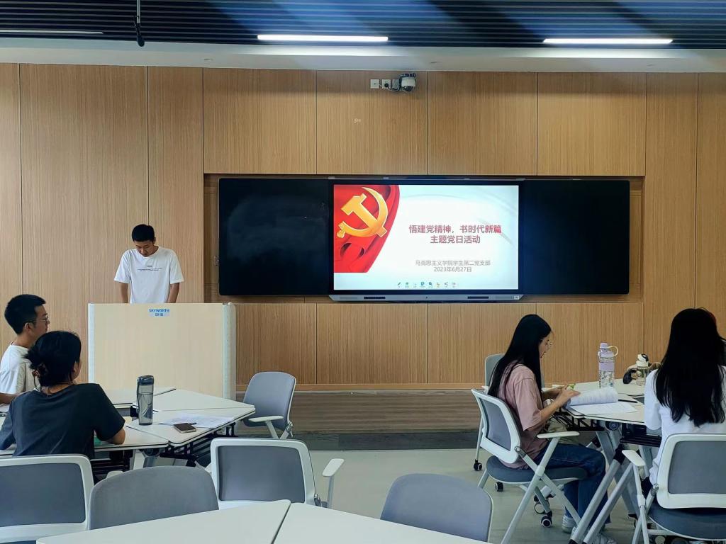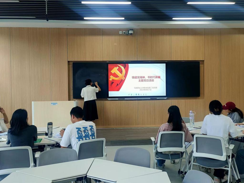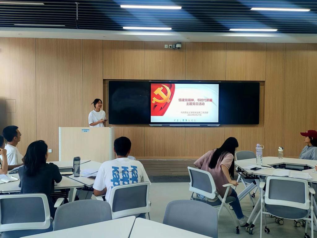 为积极响应校党委组织部《关于在“七一”前后组织开展主题党日活动的通知》的相关要求,6月27日下午,金年会jinnianhuicom学生第二党支部在社科楼516智慧教室召开“悟建党精神,书时代新篇”“七一”主题党日活动。金年会jinnianhuicom学生第二党支部书记任婷、全体党员、预备党员参加此次活动。活动由于嘉宁同志主持。