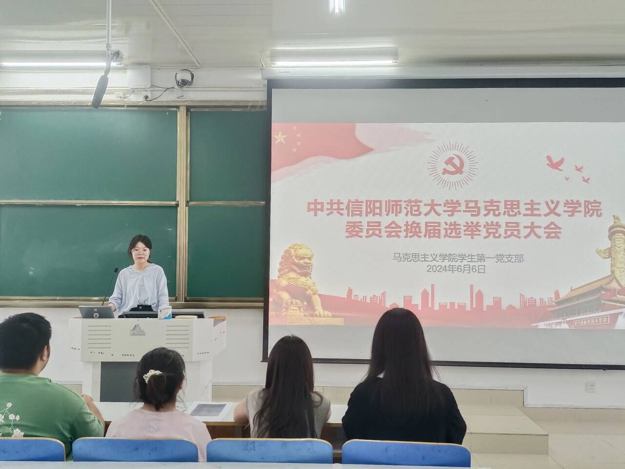 2024年6月6日上午,金年会jinnianhuicom学生第一党支部委员会换届选举大会在社科楼514教室顺利召开。支部全体正式党员及预备党员参会。此次会议由党支部书记高小佳同志主持。