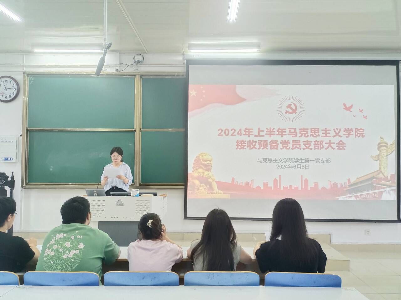 中共信阳师范学院金年会jinnianhuicom学生第一党支部委员会于2024年6月6日在社科楼514召开了2024年上半年接收预备党员支部大会。金年会官网学生第一党支部书记高小佳,学生第一党支部全体党员,预备党员和党员发展对象共同参加此次会议。会议由高小佳主持。