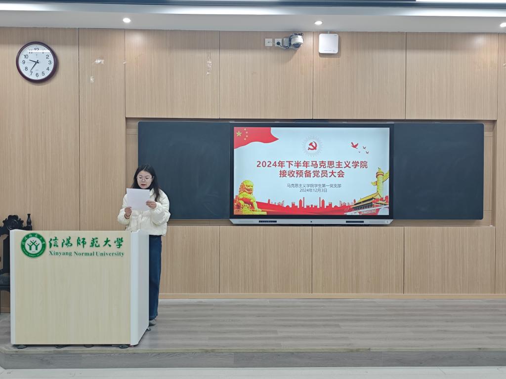 中共信阳师范学院金年会jinnianhuicom学生第一党支部委员会于2024年12月3日在社科楼516召开了2024年下半年接收预备党员支部大会。金年会官网学生第一党支部书记高小佳,学生第一党支部全体党员,预备党员和党员发展对象共同参加此次会议。会议由余浩洋同志主持。