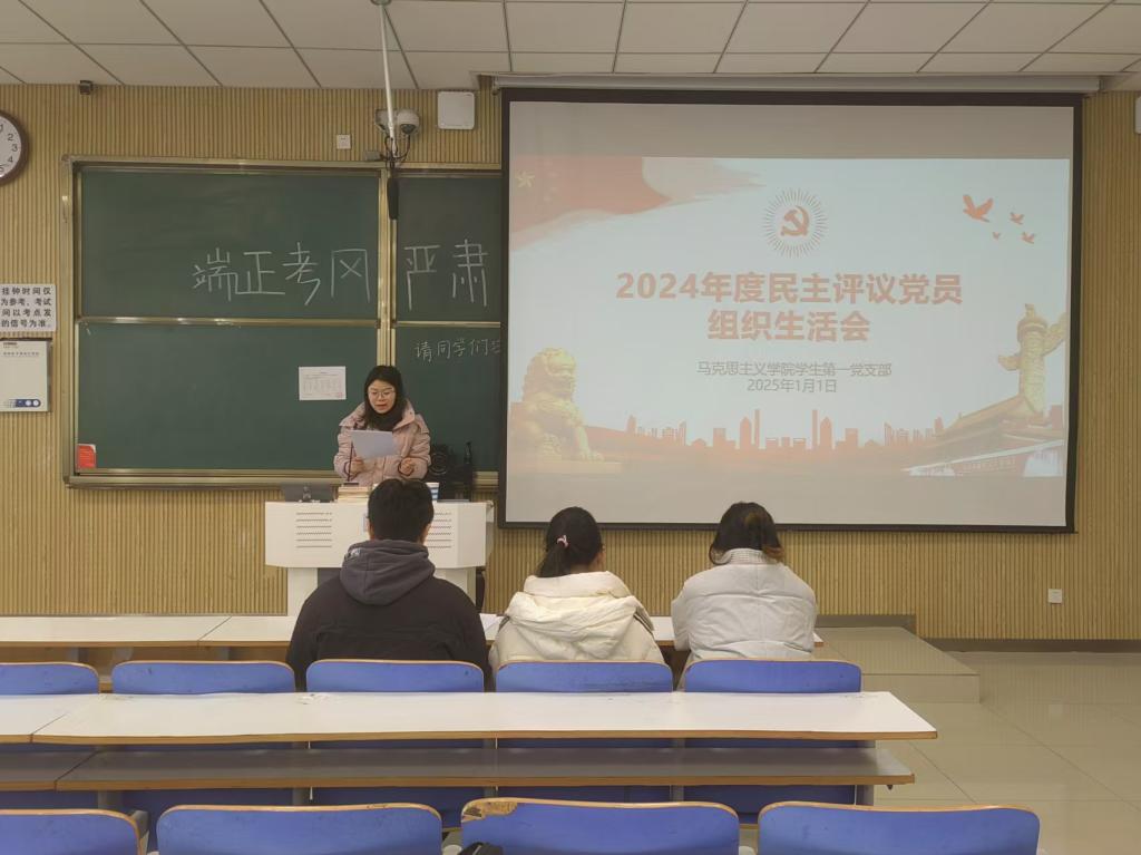 1月1日上午,金年会jinnianhuicom学生第一党支部在社科楼515教室召开2024年度民主评议暨组织生活会。金年会官网学生第一党支部全体正式党员、预备党员同志共同参与。会议采用线上线下相结合的方式进行,由余浩洋同志主持。