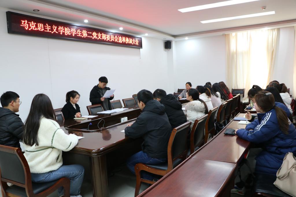 大会严格按照党支部换届选举办法及选举议程进行。会议伊始,曹梦真清点到会人数。其中,有表决权的正式党员应到10人,实到10人,符合换届选举要求。接着,会议进行第一项,曹梦真宣读选举办法(草案),在场正式党员全票通过草案。会议进行第二项,通过监票人名单,宣布记票人名单。由姜雨杭担任监票人、杨康担任计票人。会议进行第三项,在场全体党员通过差额、不记名投票的方式选举支部委员。曹梦真、曹栋、陶青青、艾子元为新一届支部委员会委员。之后,新一届支部委员会召开第一次会议,选举产生支部书记、副书记,并研究确定委员分工。会议圆满结束。