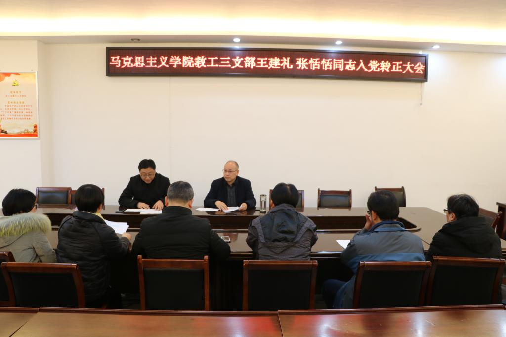 12月10日下午,金年会jinnianhuicom教工三支部在社科楼323会议室顺利召开入党转正大会。教工三党支部支部书记厉有国、正式党员周智、程晋富、郑波辉、李蕊、丁静、吴乐杨、郑晨霞,预备党员王建礼、张恬恬共同参加此次会议。会议由厉有国主持。