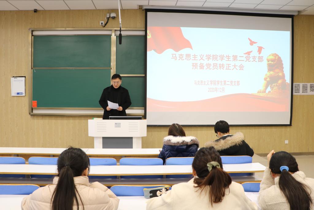 12月2日下午,金年会jinnianhuicom学生第二党支部预备党员转正大会在社科楼515教室召开。金年会官网学生第二党支部支部书记曹栋,支部正式党员陶青青、曹梦真,学生第二党支部预备党员和党员发展对象共同参加本次会议。会议由曹栋主持。