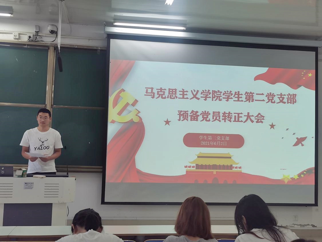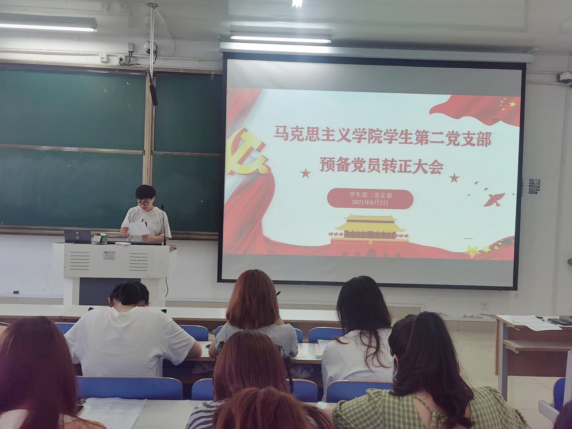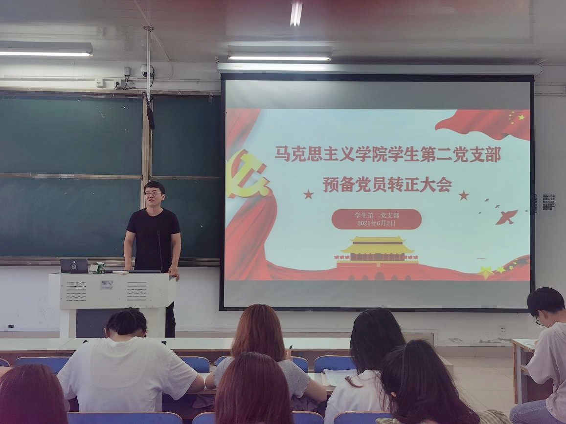 2021年6月2日上午,金年会jinnianhuicom2021年上半年学生第二党支部预备党员转正大会在社科楼516教室召开。学生第二党支部书记曹梦真,支部全体正式党员和预备党员共31人参加了此次会议。会议由杨康主持。