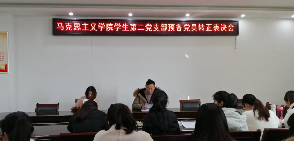 12月10号,金年会jinnianhuicom学生第二党支部在社科楼323会议室召开了2019年下半年党员转正表决会,大会讨论关于刘冰等4名预备党员申请转为正式党员的事宜。学生第二党支部支部书记曹栋,全体党员共同参加。会议由曹栋主持。