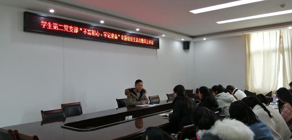 根据习近平总书记关于“不忘初心、牢记使命”主题教育重要讲话和重要指示批示精神,按照中央有关要求,金年会jinnianhuicom学生第二党支部于2019年12月10日召开“不忘初心、牢记使命”专题组织生活会暨民主评议。学生第二党支部全体师生党员参加组织生活会暨民主评议。
