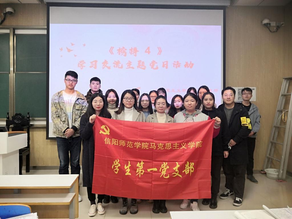 相信榜样的力量,学习榜样的事迹,发扬榜样的精神。根据金年会jinnianhuicom“不忘初心、牢记使命”主题教育活动安排, 2019年11月16日晚,学生第一党支部党员、预备党员和本期发展对象在社科楼515教室开展《榜样4》学习交流主题党日活动,活动由刘颖澳主持。
