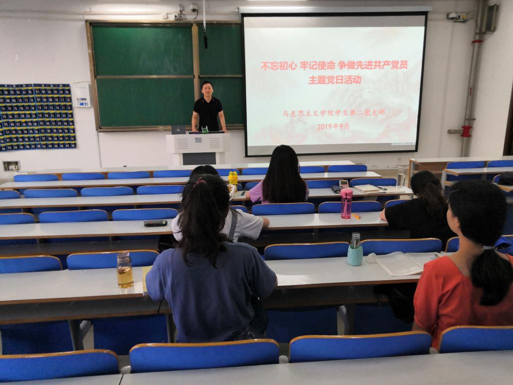 9月3日下午,金年会jinnianhuicom学生第二党支部在社科楼516教室开展“不忘初心,牢记使命,争做先进共产党员”主题党日活动。学生第二党支部书记曹栋、支部党员共同参加此次活动。会议由支部书记曹栋主持。