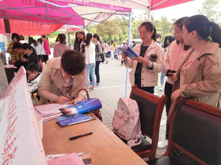 4月13日上午,河南省毕业生就业市场豫南分市场暨信阳师范学院2019届毕业生春季就业双选会在我校人文楼西篮球场举行。本次双选会由河南省教育厅、河南省大中专就业服务中心主办,信阳师范学院、信阳市人力资源和社会保障局共同承办。来自教育、文学、管理、销售、金融、建筑等行业领域的二百余家企业单位参加了招聘会,吸引金年会官网多名毕业生前来应聘。金年会官网团委老师曹菁菁到场了解企业用人情况、招聘情况。