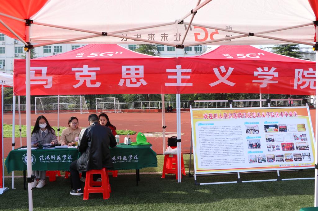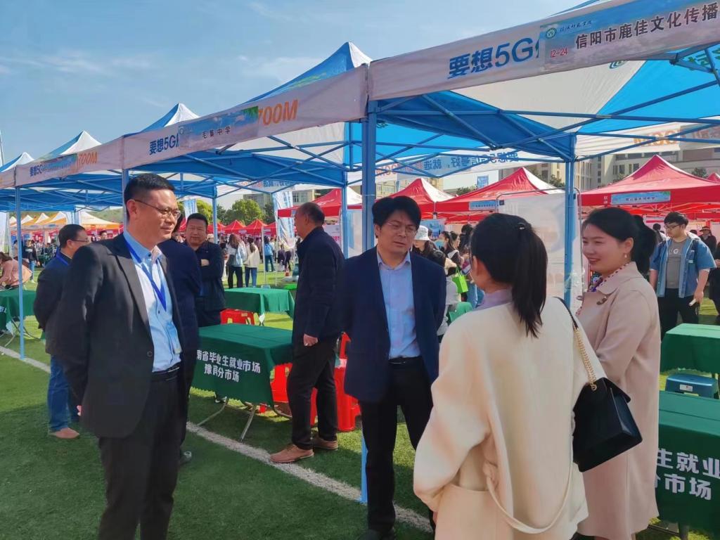 4月8日上午,河南省毕业生就业市场豫南分市场暨信阳师范学院2023届毕业生春季双向选择洽谈会在我校西操场拉开帷幕。本次双选会由河南省教育厅主办,河南省大中专就业服务中心、信阳师范学院、信阳市人力资源和社会保障局共同承办。金年会官网党委书记朱四倍,院长唐国战,副院长周智、程晋富、訾其伦,党委副书记黄煌和就业秘书陶青青前往西操场金年会jinnianhuicom服务平台进行走访。