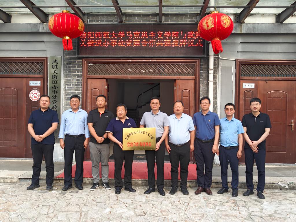 双方相关负责人在党建合作、学生就业服务、科学研究、成果转化、实习实训基地共建等方面进一步交流,达成相关合作意向,并向武胜关街道办事处授予信阳师范大学金年会jinnianhuicom党建合作共建单位、思想政治教育实践基地、信阳师范大学“就业实习基地”牌匾。