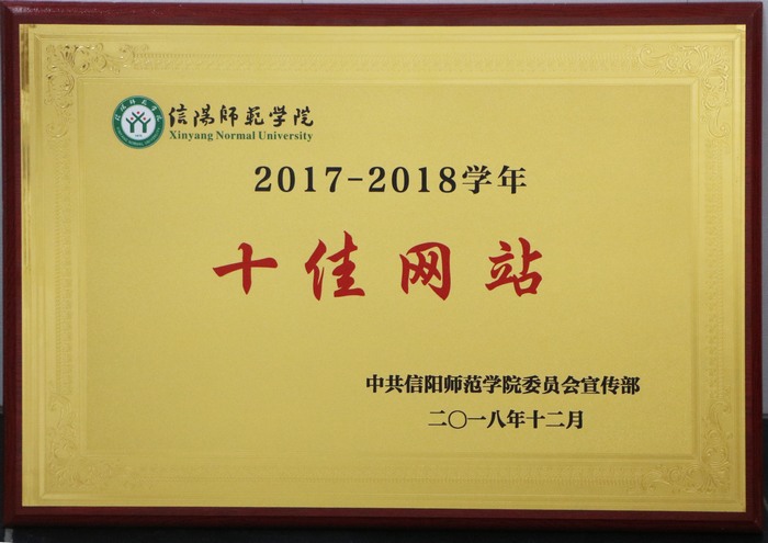 金年会官网网站获信阳师范学院2017—2018学年“十佳网站”荣誉称号