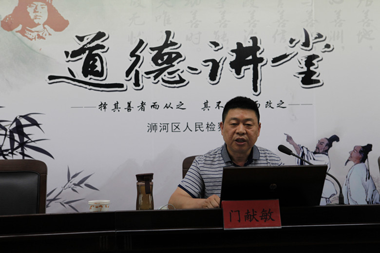 6月30日下午,由信阳市浉河区检察院主办的“社会主义核心价值观”专题讲座在该院会议室举行, 中共河南省委宣讲团成员,我部门献敏教授应邀担任主讲嘉宾。该院党组班子成员和全院干警聆听了讲座。