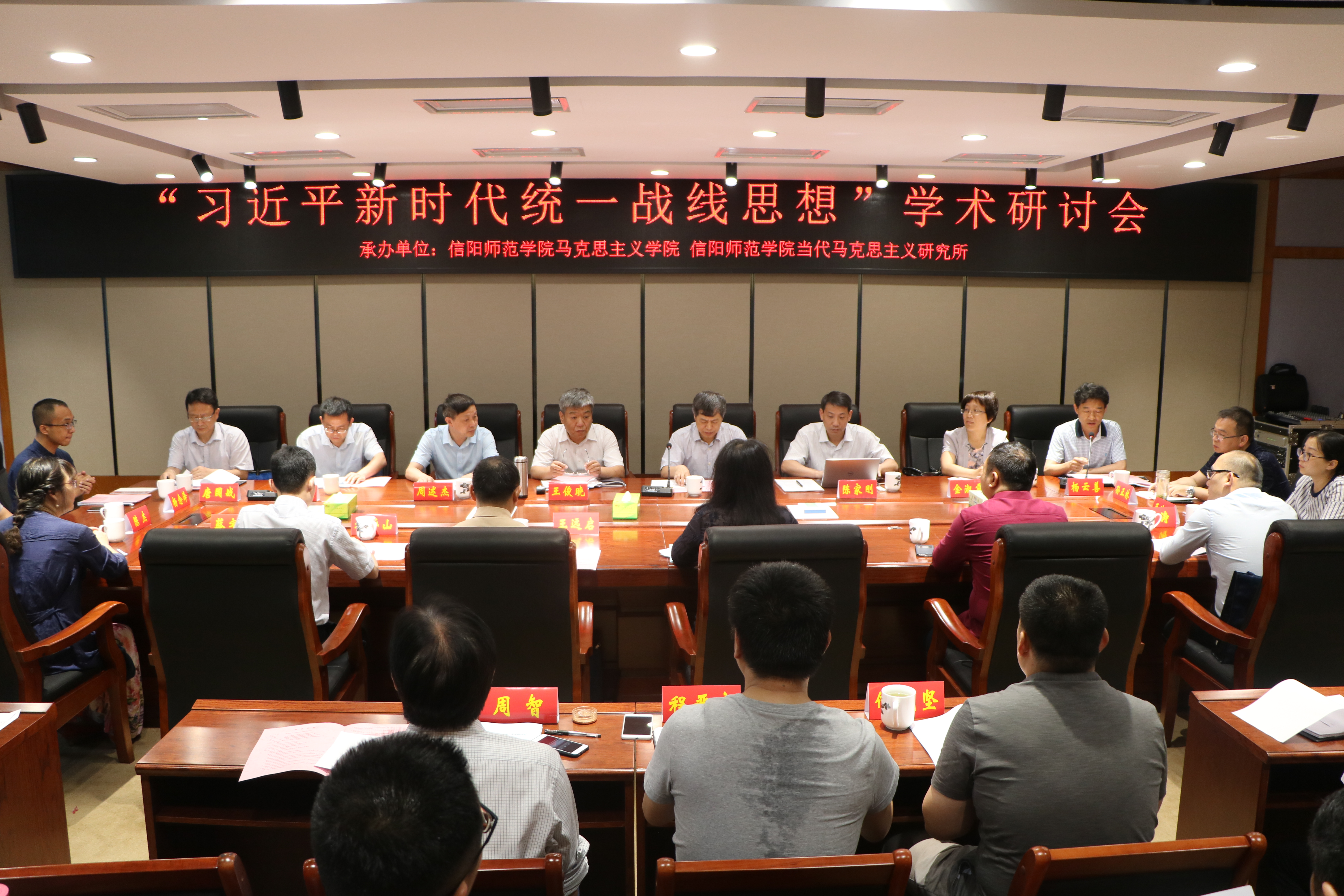为深入学习习近平新时代统一战线思想,5月19日,由信阳师范学院金年会jinnianhuicom和当代马克思主义研究所共同承办的“习近平新时代统一战线思想”学术研讨会在我校逸夫楼三楼会议室隆重召开。校长李俊、河南省社会主义学院副院长王俊晓、湖南省社会主义学院副院长周述杰、中央党史和文献研究院研究员陈家刚、复旦大学统战理论研究基地副秘书长肖存良、山东大学当代社会主义研究所办公室主任金淑霞
