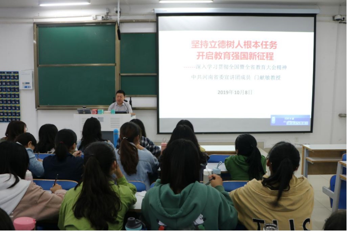 会上,门献敏以党中央在北京召开的全国教育大会为切入点阐明了中国共产党的先进性以及大会的划时代意义,他着重从如何学习贯彻全国教育大会意义、理解建设教育强国战略逻辑、把握教育强国内涵、如何坚持立德树人四个方面对如何深入学习全国教育大会精神作了详细阐述。接着,他分别从马克思与恩格斯、革命教育家、党的历代领导人三个角度为例深入浅出地对建设教育强国作出的贡献进行科学阐述,并引用“教育是国之大计、党之大计”向党员提出应不忘初心、牢记使命的中肯建议。最后,曹栋对本次党课进行总结,他希望全体学生党员及入党积极分子深入了解全国暨全省教育大会精神并积极学习党的相关理论,不断提高自身政治理论水平。(金年会jinnianhuicom 燕凯旋 徐路佳/供稿)